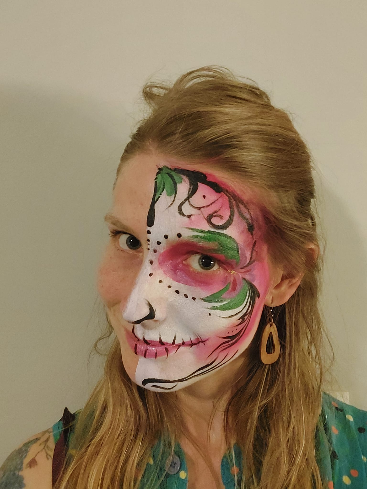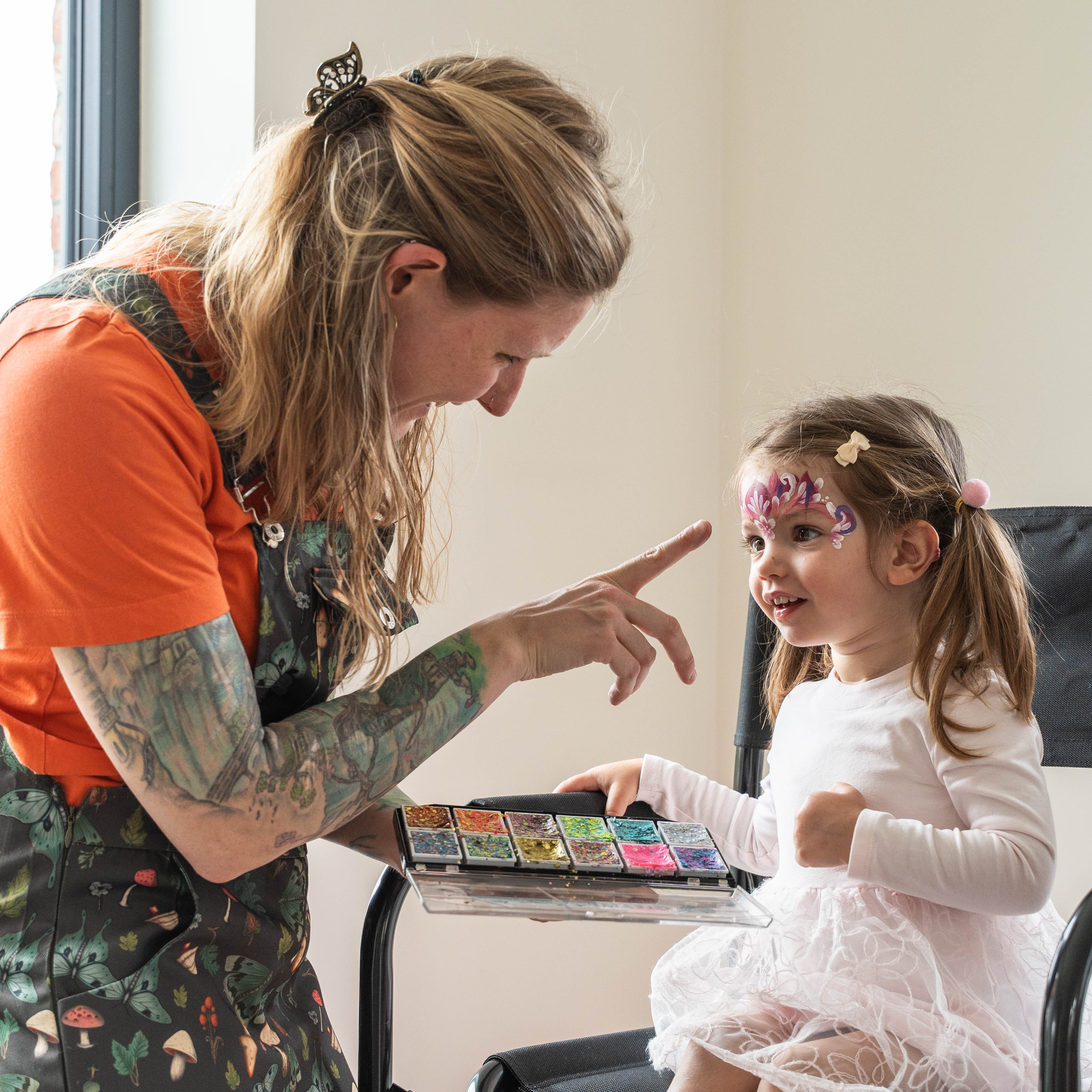 Hoi, ik ben Michelle! In 2023 riep ik Grimelleke tot leven. Al van kindsbeen af vond je me vaak in de weer met verfborstels, kleurpotloden of klei. Creatief bezig zijn toverde steevast een lach op mijn gezicht! Met Grimelleke tover ik nu ook bij anderen een glimlach op hun snoet. Heerlijk is dat! Want in elke glimlach zit een sprankje magie. En wie wil er nu geen wereld vol magie om zich heen? Ik alvast wel! Daarom volgde ik in 2022 een eerste opleiding tot kindergrimeur bij Syntra. De wereld van elfjes, trolletjes en tovenaars die me zo begeestert, haal ik met mijn penselen, sponsen en glitters nu net iets dichterbij. Zelfs helemaal tot op jouw feestjes!
